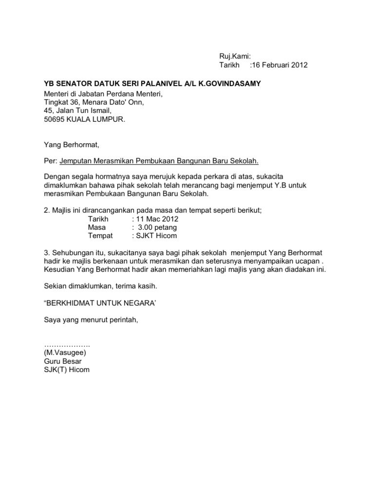 Contoh Surat Rasmi Jemputan Ke Majlis Siti nurfatimah binti hussen setiausaha program berambeh bersama pelajar uum jabatan kebajikan masyarakat bahagian sibu tingkat 6 wisma sanyan no 1 jalan sanyan 96000 sibu tel. Surat jemputan kerajaan contoh surat rasmi jemputan ke majlis surat rasmi jemputan mesyuarat surat rasmi jemputan penceramah surat rasmi jemputan perasmian contoh surat rasmi jemputan surat rasmi jemputan ceramah contoh surat rasmi jemputan penceramah contoh surat rasmi jemputan sebagai fasilitator surat rasmi tidak hadir ke sekolah surat rasmi. It has gone through several amendments since.